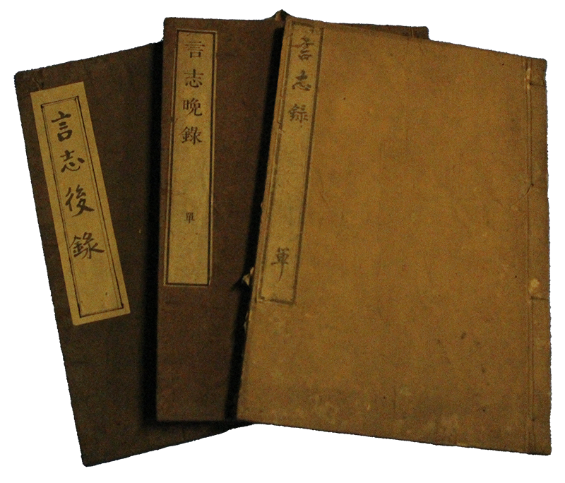 - 最初の写真は本年5月、北九州を調査探訪した際に、某塾跡で見つけた佐藤一斎の『言志録』3冊。