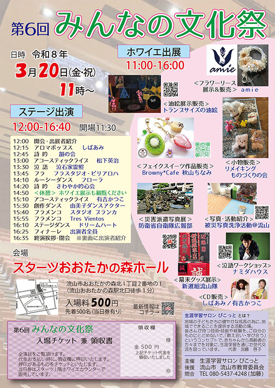 みんなの文化祭・新選組流山隊ブース出展 2026-03-20 「みんなの文化祭」3月20日(祝・金) スターツおおたかの森ホールにて 新選組流山隊のブースを出展します。 13:00より30分間、ホールにて、松下歴史塾塾長・新選組流山隊隊長の松下英治による弾き語りライブをおこないます。 Post Share LINE RSS note