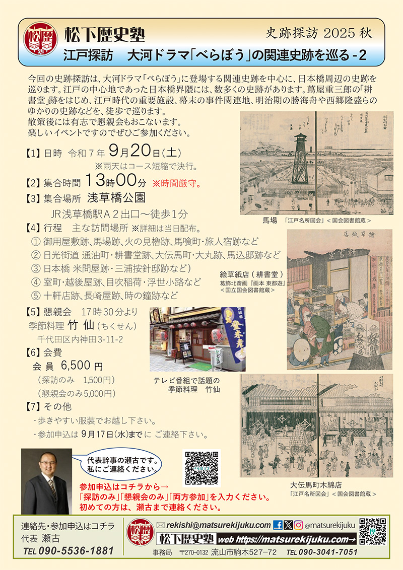 参加申込・詳細は、松下歴史塾までお問い合わせください。
